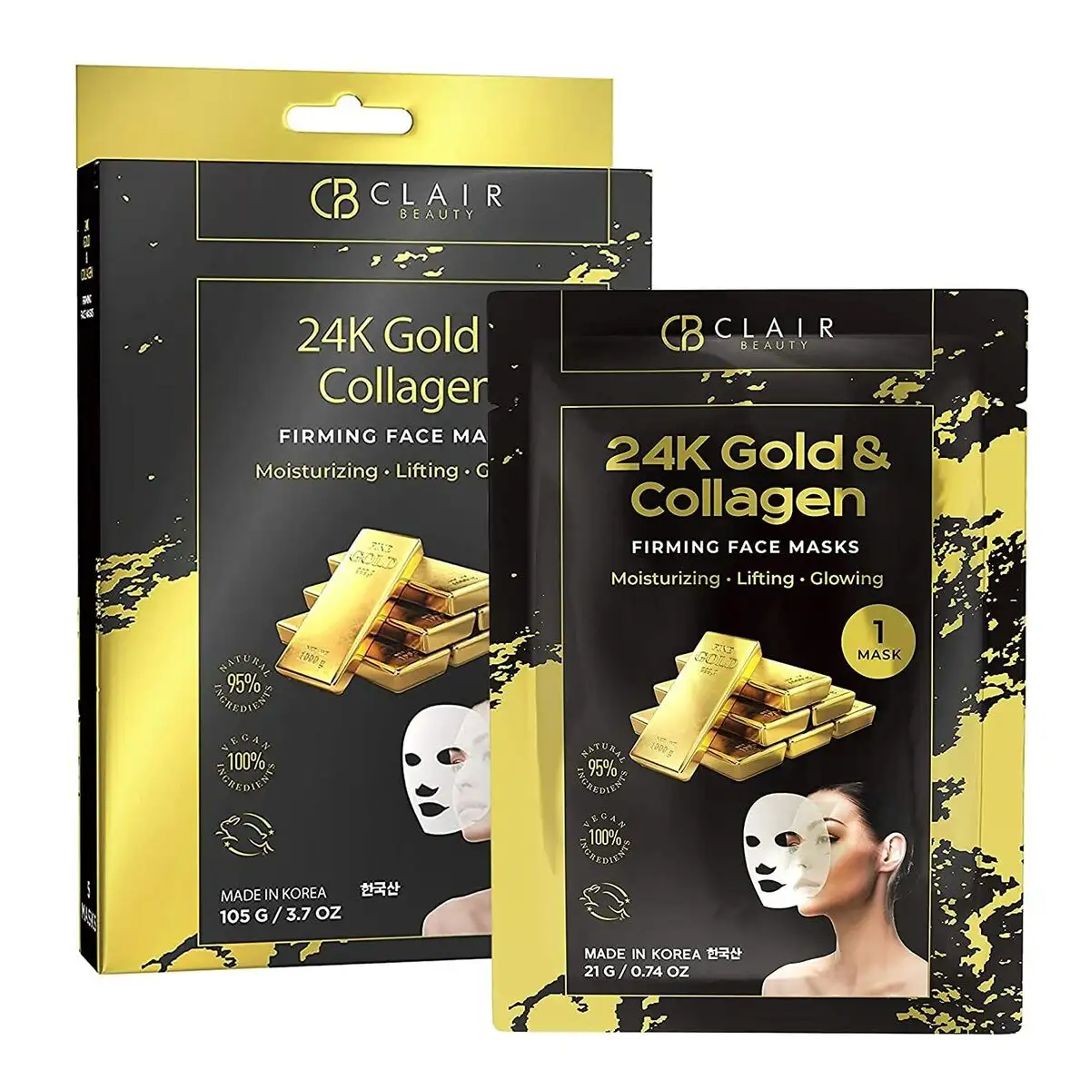 Home Sheet Mask Clear Beauty 24K Gold & Collagen Firming Face Masks